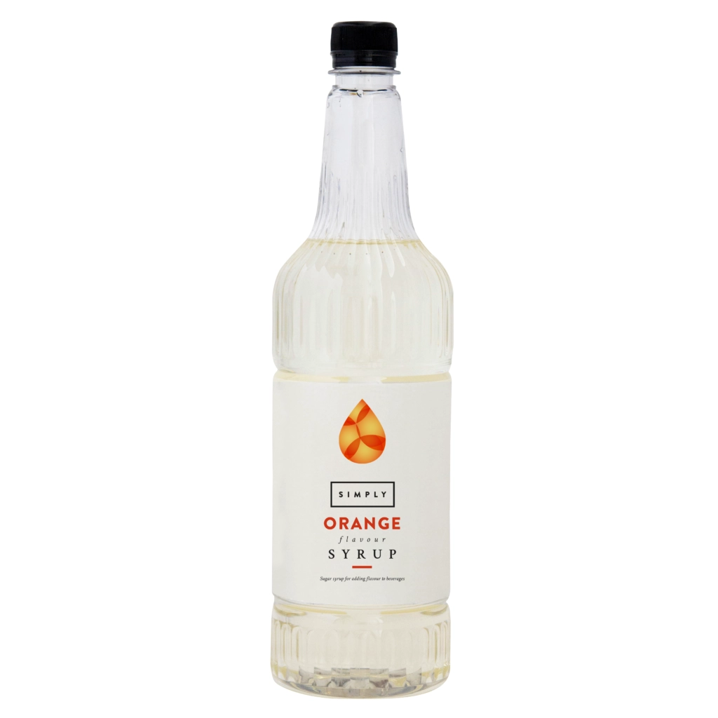 Simply orange syrup is delicious and also amazing value in a large 1 litre plastic bottle. Simply orange syrup don’t have plant extracts in them they have a longer life once opened – important if on display on a hot counter.
